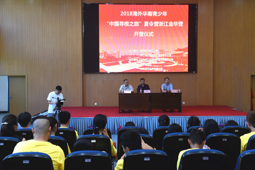 7月17日,“中国寻根之旅夏令营”浙江金华营在浙江师范大学附属中学顺利开营。来自美国、西班牙、巴西、刚果(金)等7个国家近30名海外华裔青少年参加了本次夏令营活动。金华市市外侨办副主任金烨主持了开营仪式。