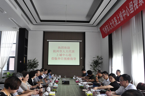 杭州市工商联党组书记徐祖德、上城区人大副主任朱荷芳一同参加了上城中心组视察华日的活动。(许春燕)