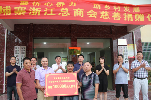 8月12日,金华市外侨办、市侨商会在武义县三港乡章湾村、金华开发区汤溪镇禾边程村,举行了两场捐赠仪式。柬埔寨浙江总商会为两个村各捐赠了10万元善款,金华市侨商会副会长胡雁影企业武义城建混凝土有限公司给章湾村捐助了50吨水泥,用于村内基础设施建设。浙江省政协办公厅秘书处处长、省政协委员工作委员会专职副主任程红娟,金华市外侨办主任章宏、副主任张远平,柬埔寨中国商会副会长、柬埔寨浙江总商会会长、中柬国际物流有限公司总经理施永平,金华市侨商会秘书长成盖平,武义县委常委、统战部部长张勤,金华开发区党工委副书记傅兴平等出席。