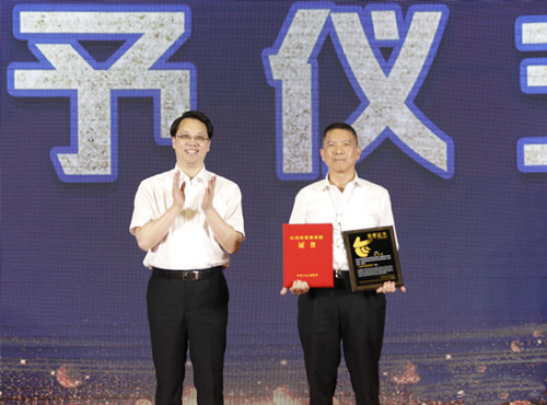 台州市委副书记、代市长张晓强(左)为詹洪良颁奖
