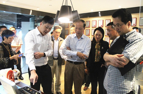 诺尔康董事长李方平、诺尔康神经刺激科学重点企业研究院副院长黄穗陪同检查组一行参观了诺尔康生产基地,观摩了诺尔康最新科研产品,了解了诺尔康科技成果转化工作现状。