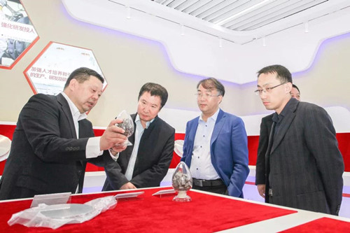 在产品展厅,考察团参观了公司自主研发生产的各种超高纯金属材料及溅射靶材产品,并表示江丰电子将不懈奋斗,努力成为世界上一流的半导体材料企业。在分析检测中心,姚力军博士激动的说,分析检测中心的设备可以实现对多种类超高纯金属材料进行精准分析,以此来保障国产超高纯金属靶材的世界品质。在智能加工生产线,姚力军博士介绍说,这是江丰电子与宁波智能研究院一起设计研发的靶材智能加工生产线,极大的提高了靶材生产效率及品质。