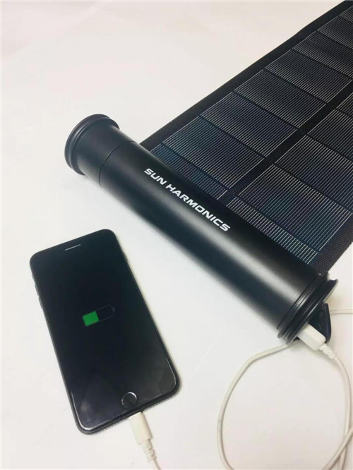 这款委托纽约著名设计公司设计的太阳能卷轴充电宝不仅采用了尚越光电最新的柔性15瓦的薄膜太阳能组件,还提供了优化设计的能源传输控制和储能模块,另外为太阳能卷轴配置的高品质蓝牙音箱、高亮LED手电大幅提升了用户体验。