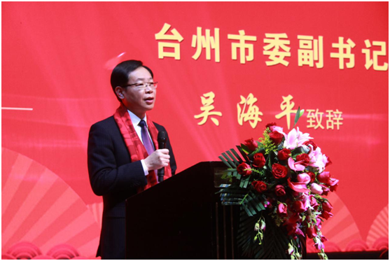 吴海平副书记在讲话中充分肯定台州市侨商会始终秉承“凝聚侨心、服务大局”的宗旨,紧紧围绕发展所需、侨商所盼,在引导侨商回归创业、服务侨企转型发展、维护侨商合法权益等方面做了大量卓有成效的工作。他说广大侨商积极参与支持家乡各项事业建设,为台州经济社会发展和对外开放作出了积极的贡献。他强调2019年是新中国成立70周年,也是全面建成小康社会的关键之年。市五届三次党代会提出要以现代化湾区建设统领“再创民营经济新辉煌”和“新时代美丽台州建设”,推动台州在高质量发展的道路上继续阔步前进。建设现代化湾区,离不开广大侨商、侨资企业的鼎力支持和全力参与。他要求广大侨商担负起新时代赋予的新使命,在市侨商会的带领下,进一步发挥自身的资金优势、智力优势、人脉优势,一如既往地关心、支持、参与台州的建设和发展,为助推台州“现代化湾区”建设作出新的更大的贡献。