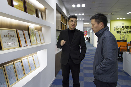 从文三路华星大厦起家,2015年跨江,入驻高新区浙大科技园(华业大厦)至今,公司规模从5、6人到目前的近百人。作为科技领域的创业者,王真震向张炬刚局长一行详细介绍了公司的发展历程、企业文化、市场布局和创业感悟等;许志峰就公司自主研发的核心产品以及行业应用等进行了演示。