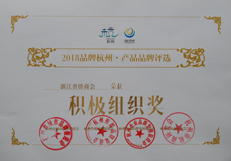 近日,省侨商会荣获“2018品牌杭州产品品牌评选”积极组织奖。