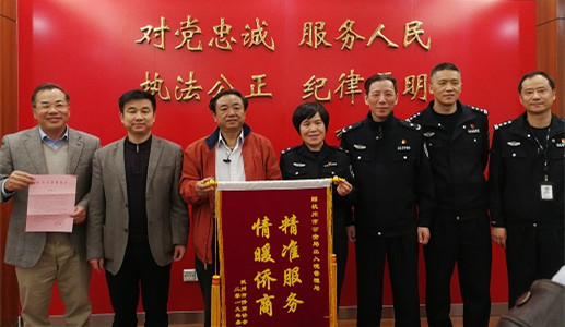 近日,在中共杭州市委统战部部务委员胡德斌带领下,杭州市侨商会执行会长丁德坤、副监事长杨江良等一行专程前往杭州市公安局出入境管理局,向市出入境管理局对杭州侨商多年来的关心与支持深表感谢之情,并赠送“精准服务,情暖侨商”锦旗与感谢信。市公安局出入境管理局姚娟局长等接受锦旗与感谢信。