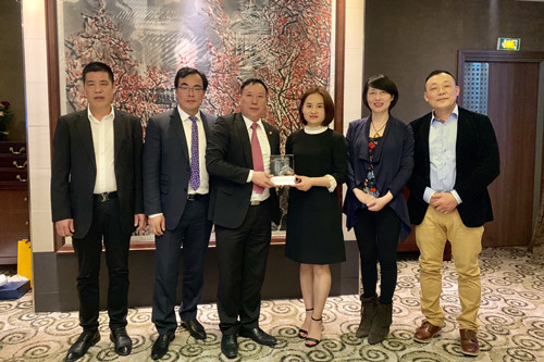 张磊会长首先代表商会对金华市商务考察团一行来法访问表示热烈欢迎,同时对中国驻法使馆一直以来的大力支持和帮助表示衷心感谢。他说,法国金华商会自2015年成立以来,秉承“联系乡谊、互帮互助、精诚团结、促进融入”的创会宗旨, 助推金华与法国的经贸交流与合作, 共享资源、共谋发展 , 促成法国夏斗湖市与金华市、法国巴卡拉市和浙江浦江结成了友好城市, 助力捷克与浦江晶盛有限公司的“捷克水晶玻璃器皿窑炉热加工生产线“项目合作,取得了有目共睹的成绩。他表示,今后将持续推进金华与法国的交流与合作,特别要协助做好6月在法国举行的金华大型贸易投资推介活动的筹办工作,为家乡的建设发展和法国的经济繁荣再做新贡献。