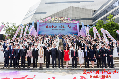 最近,由杭州市总工会举办的“爱在杭州 缘定一九”新杭州人新婚盛典在杭州市职工文化中心隆重举行,来自英国、乌克兰及全国20余个省(市、自治区)的100对新杭州人在现场500余名嘉宾亲友的见证、祝福下喜结连理。