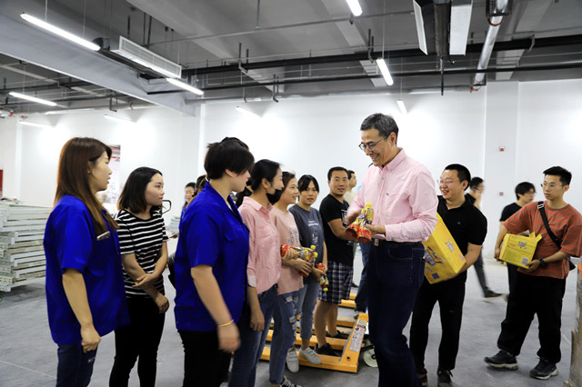 近日,聚光科技党委书记兼工会主席陈荧平前往青山湖园区慰问搬迁的供应链一线员工,供应链中心总经理助理练彬陪同。