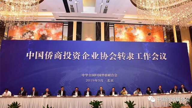 2019年5月29日,中国侨商投资企业协会转隶工作会议在北京召开。中国侨联党组书记、主席万立骏出席会议并讲话。中国侨联副主席李卓彬、中国侨商投资企业协会会长谢国民、中国侨商联合会会长许荣茂出席会议。中国侨联副秘书长、经济科技部部长赵红英主持会议。中国侨商投资企业协会常务理事会和监事会成员及代表共120余人出席了此次会议。