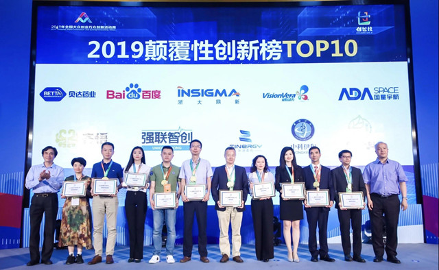 贝达荣登2019颠覆性创新榜,资深副总裁万江(左七)上台领奖并发表获奖感言