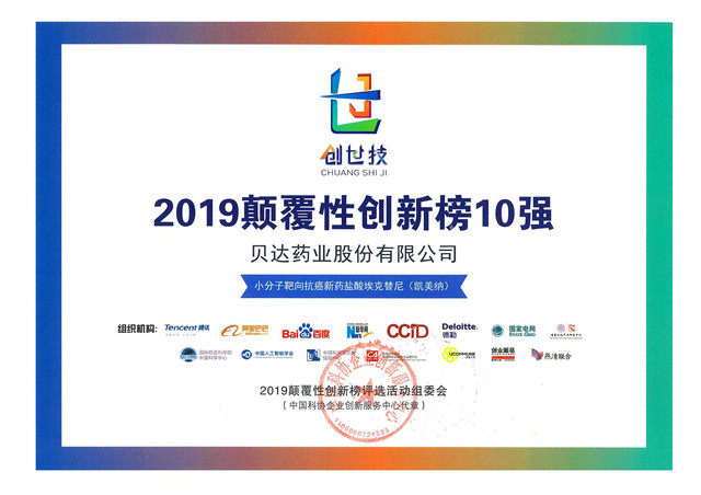 以“汇聚双创活力、澎湃发展动力”为主题的2019年全国双创活动周日前在杭州拉开帷幕,作为我国规格最高、影响力最大的双创品牌活动,汇聚了全国双创精英,成为创业创新者的盛大节日。双创周期间共举办16项高规格国家部委活动,本次颠覆性创新榜发布会就是其中之一。贝达药业自主创新成果——中国首个小分子靶向抗癌新药盐酸埃克替尼(凯美纳),不仅作为优秀项目在主会场“市场主体活力竞相迸发”展区进行展示。又经组委会评选,排名首位入选“创世技”2019颠覆性创新榜TOP10。
